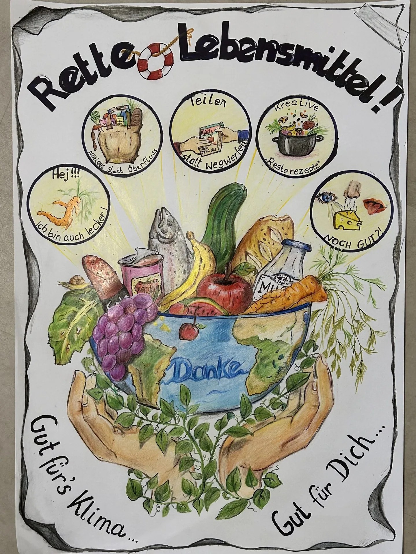Im Rahmen des Kooperationsprojektes waren Schülerinnen und Schüler weiterführender Schulen (Jahrgang 5 bis 13) in Braunschweig im Februar aufgerufen, ihre kreativen Ideen für Klimaschutz durch die Rettung von Lebensmitteln auf Plakaten festzuhalten. Die Einreichfrist endete am 21.02.2025. Die abgegebenen Plakate wurden im Nachhaltigkeitszentrum Braunschweig (NHZ) bis zum 05. März öffentlich im Rahmen einer informativen Ausstellung mit Fakten zu Lebensmittelabfällen dem Publikum präsentiert. Alle Besucher*innen des Nachhaltigkeitszentrums waren eingeladen, für ihren Favoriten abzustimmen und ihm so zum Sieg zu verhelfen. Zusätzlich beurteilte eine Jury die Poster.